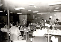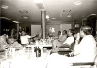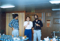 晚上七點半,全隊歡聚一堂,歡度除夕。隊長川口和副隊長福西簡單致詞后,由我用中文喊了一聲"干杯",暢飲、交談活動開始。八點過后,晚會進(jìn)入高潮,人人輪流唱歌。隊長和副隊長興高采烈地帶頭唱"北國之春",并一定要我與他們合唱。這首曲子在中國已經(jīng)流行,我們愉快地合唱,大家也為我們合拍擊掌。歌聲此起彼伏,人人爭先。九點半許,研究高空大氣物理的野村先生提議,讓我和他一起合唱一首中國民歌,他說是"青島民謠",但記不得歌名了。我請他哼哼調(diào)子,原來是"康定情歌",這首民歌是國內(nèi)非常流行的:"在那遙遠(yuǎn)的地方,有一位好姑娘,……"我先唱了兩段,接著,野村、福西、山岸先生都來和我一起合唱,我用中文,他們用日文,動情的歌聲把會場的氣氛再一次推往高潮。當(dāng)午夜十二點的鐘聲敲響,全場不約而同地用英語歡呼"Happy