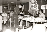 禱告畢,幾位海上自衛(wèi)隊軍官讓我去士官室。我們高興地一起照像、喝酒、談天。飛行長荒木隆和我談起了他的身世。他出生于中國的大連,在中國生活到七歲后回國。他的孩子稱他是"中國人"。談起中國和日本的風(fēng)俗習(xí)慣,的確非常相近,中日慶祝新年用的詞語,諸如"謹(jǐn)賀新年"、"新春快樂"、"新年快樂"、"元旦"等均相同。他很誠摯地說:"The