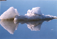 下午,我躺在床上,想起今天上午失掉了拍照海豹的機(jī)會,非常遺憾。立即翻身起床,帶著相機(jī),再度向海峽方向走去。我?guī)蟽杉芟駲C(jī),分別裝上正片和負(fù)片,并帶上小型錄音機(jī),獨自漫步在海峽附近,等待著海豹出現(xiàn)。海豹沒有露面。我打開錄音機(jī),有時錄下潺潺的流水聲,有時錄下自己的歌聲;有時拍下南極海鷗,有時拍下冰山的倒影,有時拍下奇狀的南極風(fēng)化石,有時也挑揀漂亮的南極石作紀(jì)念……。盡管忙碌著,但我的耳朵仍專心傾聽著海面上的動靜,眼睛的余光仍掃視著海峽的水面,等候著海豹出現(xiàn)。冰山的倒影真美,這是珠峰北坡冰塔林所不具備的。海面上的小冰山固然美,但若把它與它的倒影組合起來,那更是錦上添花,奇幻無比。天氣分外暖和,靜靜無風(fēng),冰山的倒影更顯清晰、美麗。我貪婪地拍著,一張又一張,用長變焦鏡頭為冰山和它們的倒影拍特寫。攝入鏡頭的,有的似雪豹戲水,有的似飛魚出水,有的似冰柱進(jìn)海底……。一頭海豹竟在我專注地拍攝冰山時溜去。我又失去了一次拍攝海豹的良機(jī)。