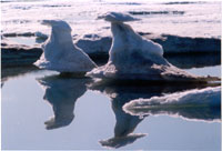 我又漫步在海峽岸邊,靜候著海豹出現(xiàn)。好幾次海水的響聲把我吸引,但絲毫不見海豹影子,那是冰消融落水的聲音。