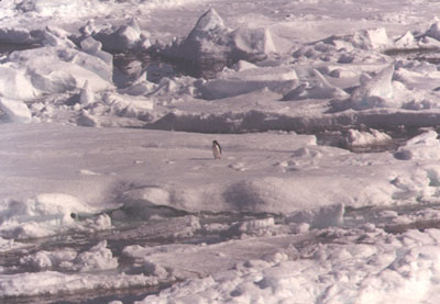 鳥瞰浮冰上孤獨的企鵝