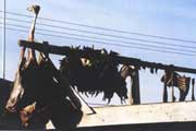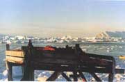 將獵物的肉掛在房頂上,以防狗和北極熊偷吃 |