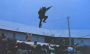 阿拉斯加最有特色的運動是“跳毯子”,這種游戲多在夏季玩。一個人站在一張由幾張海象皮縫制的大毯子上面,當(dāng)毯子猛地被繃緊時,站在上面的人便飛入空中。通常跳毯子高手都是年輕婦女,能騰空10米多,并且在空中連翻幾個筋斗和做其他花樣動作。