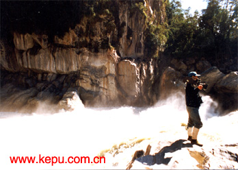 在絨扎瀑布前忙碌的電影攝影師