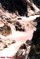在白馬格雄以下河床上,本世紀(jì)初的英國(guó)人貝利和20年代的沃德(F·K·ward)曾提到的“彩色瀑布”或“虹霞瀑布”,這次考察證實(shí)已經(jīng)消失,遺址只剩下四處跌水殘留。