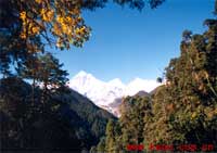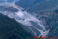 在海洋性氣候控制下的水汽通道范圍內(nèi),南峰亦成為現(xiàn)代冰川發(fā)育的中心。南峰東南坡為迎風(fēng)坡,發(fā)育有三條大的山谷冰川,如央朗藏布冰川,白弄巴冰川,它們長達約10公里,延伸入海拔3000多米的針闊混交林中;南峰北坡和西坡各有一條山谷冰川,西坡的則隆弄冰川長約10公里左右,它是以分段躍動作超長運動的躍動冰川,經(jīng)10多年的前后觀測對比,該冰川正在快速的消融變動之中。顯然以南峰為中心發(fā)育的冰川呈不均勻、不對稱的掌狀分布為特點。峽谷北側(cè)的加拉白壘峰也是冰川發(fā)育的中心,東坡發(fā)育一條大型山谷冰川,叫列曲冰川,這里雪線為4700米,冰川末端海拔2850米,冰川補給豐富,消融區(qū)中下部表磧覆蓋,動態(tài)變化比較穩(wěn)定。