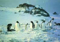 身高56~66厘米,體重5.5公斤。近年來(lái)又發(fā)現(xiàn)了2個(gè)亞種,即北方種和南方種,其身高、體重和形態(tài)略有差異。金圖企鵝嘴細(xì)長(zhǎng),嘴角呈紅色,眼角處有一個(gè)紅色的三角形,顯得眉清日秀,瀟灑風(fēng)流。雌企鵝在南極的冬季產(chǎn)蛋,每次2枚,雌、雄企鵝輪流孵蛋,先雄后雌,每隔1~3天換班一次。孵蛋期較長(zhǎng),達(dá)七八個(gè)月,雛企鵝發(fā)育較慢,3個(gè)月后才能下水。