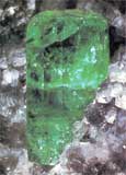 祖母綠是一種含鈹鋁的硅酸鹽,其分子式為Be3Al2[Si6O18],屬于綠柱石家族中最“高貴”的一員。屬六方晶系。晶體單形為六方柱、六方雙錐,多呈長方柱狀。集合體呈粒狀、塊狀等。翠綠色,玻璃光澤,透明至半透明。折光率1.564-1.602,雙折射率0.005-0.009,多色性不明顯。非均質(zhì)體。硬度7.5,密度2.63-2.90 克/立方厘米。解理不完全,貝殼狀斷口。具脆性。X射線照射下,祖母綠發(fā)很弱的純紅色熒光。