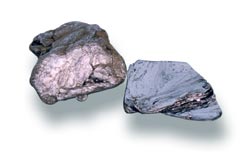 輝鉬礦化學成分為MoS2,晶體有不同類型,分屬六方和三方晶系的硫化物礦物。呈鉛灰色,表面上看像鉛,條痕為亮鉛灰色,強金屬光澤。通常呈葉片狀、鱗片狀集合體。一組極完全底面解理。摩氏硬度約為1-1.5,比重大,達5。薄片具撓性。在光薄片下,不透明,有白色到灰白色的強烈多色性和非均質(zhì)性。與石墨相似,但以其密度較大、光澤較強、顏色及條痕較淡與石墨相區(qū)別。