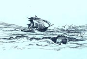 哥倫布把裝有羊皮紙信的木桶扔入大海 |