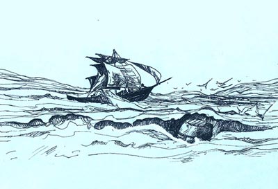 哥倫布把裝有羊皮紙信的木桶扔入大海