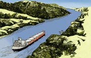 提到位于中東地區(qū)的埃及,你也許馬上會(huì)聯(lián)想到在這個(gè)文明古國里有著聞名世界的金字塔以及獅身人面像。是的,金字塔已不僅是埃及的驕傲和象征,也是聞名世界的古代文化遺產(chǎn)。不過,在埃及還有一條與此相齊名的人工開鑿的運(yùn)河--蘇伊士運(yùn)河,也同樣是值得埃及人民驕傲與自豪的。這條位于埃及東北部,北起地中海邊上的塞德港、南至紅海蘇伊士灣的陶菲克港的人工運(yùn)河,全長195千米(包括兩端伸人海中的航道),河面寬300~350米,平均水深20米,可通過150萬噸的滿載貨船和30多萬噸的空載貨船,平均過河時(shí)間為12~13個(gè)小時(shí)。