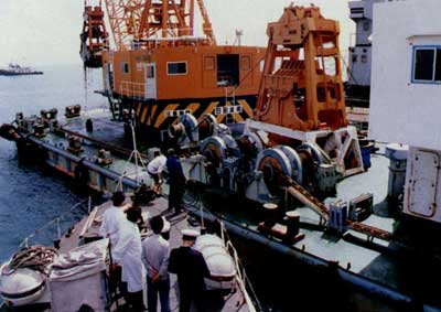 中國海監(jiān)執(zhí)法人員登臨挖泥船檢查