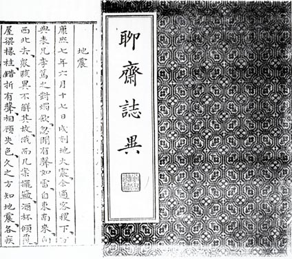 康熙七年六月十七日(公元1668年7月25日)山東莒縣、郯城間發(fā)生8.5級(jí)特大地震,聲若轟雷、河水橫溢,城垣民房倒塌一空,計(jì)壓死四萬余人。當(dāng)時(shí)蒲松齡正在這次地震的重災(zāi)區(qū)淄川,作為這次地震的幸存者,震后蒲松齡以《地震》為題,把這次地震的親身經(jīng)歷記錄下來,收編在《聊齋志異》中。