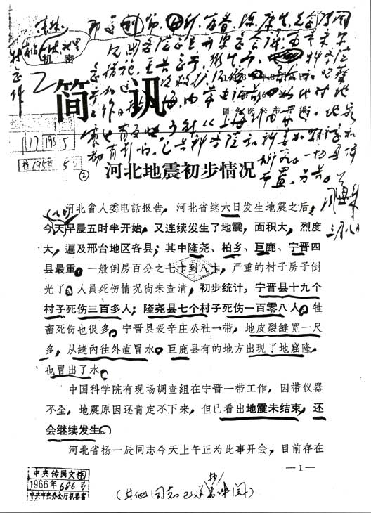 周恩來總理邢臺地震批文