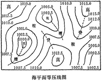 (2)高氣壓(簡(jiǎn)稱高壓),其等壓線閉合,中心氣壓高,向外逐漸減低?臻g等壓面向上凸形狀,形似山丘。
