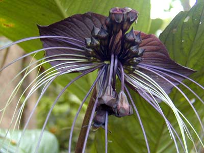 老虎須為箭根薯科多年生草本,又名箭根薯,老虎花、山大黃等,花葉俱美,既可觀花,又可觀葉,葉片叢生,有點象芋,常年青翠欲滴;花期4至8月,花朵紫褐色至黑色,為植物界中所罕見,且形狀獨特,花瓣基部生有數(shù)十條紫褐色細絲,很象老虎的胡須,因此得名。在1999年于昆明舉辦的’99昆明世界園藝博覽會中,老虎須作為大溫室里的重點參展花卉,大放異彩,轟動全園,倍受廣大中外游客關(guān)注和喜愛,被評為金獎。