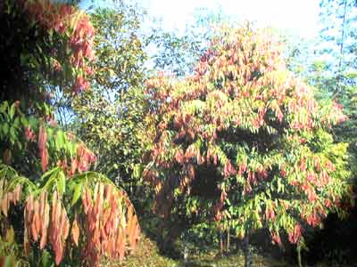 在園林綠化中,鐵力木也不失為一種漂亮的樹木。它樹形優(yōu)美,呈圓錐狀,酷似西雙版納地區(qū)傣族村寨里的井塔;幼嫩枝葉為防止過強(qiáng)紫外線傷害而呈鮮紅色,好似婷婷玉立的紅衣少女;花期每年3—5月,盛開時潔白芬芳,4片花瓣狹長伸展,猶如翩翩起舞的白衣仙女;種子含油量特豐富,高達(dá)78.99%,可作工業(yè)油料或寺院點(diǎn)佛燈之用。