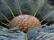 俗話說“鐵樹開花,啞巴說話”、“千年鐵樹開了花”或“鐵樹開花馬長角”,比喻事物的漫長和艱難,甚至根本不可能出現(xiàn)。但實(shí)際上并非如此,尤其是在熱帶地區(qū),20年以上的蘇鐵幾乎年年都可以開花。蘇鐵雌雄異株,花形各異,花期6—8月,雄球花長橢圓形,挺立于青綠的羽葉之中,黃褐色的花球,內(nèi)含昂然生機(jī),外溢虎虎生氣,傲岸而莊嚴(yán);雌球花扁圓形,淺黃色,緊貼于莖頂,如淡泊寧靜的處女,安詳而柔順地接受熱帶、亞熱帶陽光的照射。