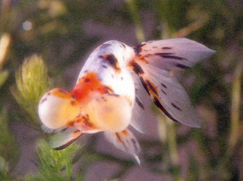 經(jīng)過幾年選育,在彩色水泡中又培育出兩眼之間具有紅色斑塊者,十分媚人,若色斑方正,堪稱極品。