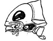 復眼是昆蟲的主要視覺器官,通常在昆蟲的頭部占有突出的位置。多數(shù)昆蟲的復眼呈圓形、卵圓形或腎形。有些昆蟲的復眼在每側又分為上、下兩個,成為“四眼”昆蟲,例如眼天牛、豉甲(見右圖)和浮游的一些種類。特別是生活在水中的豉甲,由于它的復眼分為上、下兩部分,因而在獵食時既能發(fā)現(xiàn)水面的目標,又能發(fā)現(xiàn)水中的目標。在突眼蠅中,復眼著生在頭部兩側的柄狀突上。