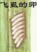 白背飛虱產(chǎn)卵在寄主植物的葉鞘或葉片主脈組織內(nèi)。每次產(chǎn)一至十余個(gè),排列整齊,形成葉面的棕色縱條。它也是先用產(chǎn)卵器劃破葉鞘或葉片組織,然后將卵產(chǎn)在縫隙組織中。卵長(zhǎng)形略彎,下端略粗鈍圓,上端略細(xì)而尖。初產(chǎn)時(shí)白色,后轉(zhuǎn)為蠟黃色。