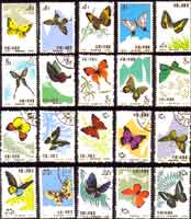 郵票雖只有方寸之大,卻是民族文化、科學(xué)、技術(shù)的結(jié)晶,是國家政治和經(jīng)濟(jì)興衰的反映。郵票是國家的名片,是科學(xué)的窗口。在動(dòng)物世界里,人們最喜愛、發(fā)行郵票數(shù)最多的可算是蝴蝶了。壽建新和周堯(1990) 編著的《世界蝴蝶郵票》一書中收集了世界的蝴蝶郵票563枚323種, 其中我國大陸有一套20枚20種,F(xiàn)將我國大陸的蝴蝶郵票及其代表的蝴蝶介紹一、二。 銀鉤青鳳蝶 Graphium eurypylus