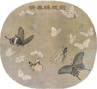 北京故宮博物館珍藏著不少祖國歷代名畫。其中有一幅宋畫,名為《晴春蝶戲》圖。畫面清晰生動,十多只彩蝶,色彩鮮艷,風姿秀麗。這幅畫據(jù)說為南宋畫家李安忠所作,畫上的各種蝴蝶的大小比例、形態(tài)特征以及色彩斑紋等,大都酷似實物,栩栩如生。雖然時隔千年,仍然能辨明都是屬于南宋產(chǎn)于國都臨安(今杭州)附近的蝶種,個別種類還可明顯無誤地識別其雌雄。
