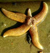 在水族館里,五顏六色的魚(yú)兒和千姿百態(tài)的其它水生動(dòng)物肯定讓你眼花繚亂、目不暇接。但是,你絕對(duì)會(huì)在一些色彩鮮艷的五角星似的動(dòng)物前面駐足良久,因?yàn)樗鼈兲嫣亓恕渌膭?dòng)物身體都是兩側(cè)對(duì)稱(chēng)的,這些動(dòng)物卻那么地與眾不同。仔細(xì)看一下標(biāo)牌你就會(huì)知道,原來(lái)它們的名字叫做海星,屬于棘皮動(dòng)物門(mén),身體的這種獨(dú)特狀態(tài)被科學(xué)家們稱(chēng)為五輻射對(duì)稱(chēng)。