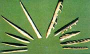 自從古人類出現(xiàn)以后,他們?cè)诟鱾(gè)發(fā)展時(shí)期制造和使用的工具及其它各種文化遺物也都屬于遺物化石。如果你到我們中國(guó)古動(dòng)物館來,你會(huì)在里面的“樹華古人類館”里欣賞到上百件體現(xiàn)著遠(yuǎn)古人類智慧的珍貴的舊石器、骨器等遺物化石。本館館主龍子還曾經(jīng)在一位農(nóng)民手中見到過一件1萬多年前的古人類用猛犸象的骨頭制造的短劍,制作得異常精細(xì),簡(jiǎn)直跟近代士兵用的匕首一樣,血槽里還殘存著狩獵時(shí)沾著的獸血變質(zhì)后形成的油黑色的殘留物。通過這把短劍,我似乎看到了我們祖先在1萬多年前茹毛飲血的原始生活場(chǎng)景,但我更加感受到了我們祖先利用智慧在嚴(yán)酷的生存競(jìng)爭(zhēng)環(huán)境里拼搏不息的頑強(qiáng)精神。正是靠著這種精神和智慧,我們?nèi)祟惤K于一步步地進(jìn)化發(fā)展到了今天,成為了主宰地球的主人。