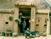在農(nóng)民的窯洞前休息 |