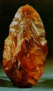 直立人面部比較平扁,身材明顯增大,平均身高達(dá)到160厘米,體重達(dá)到約60公斤。直立人是最早會(huì)用火的人類物種;它們最早能夠按照心想的某種模式來制造石器。在非洲,這種石器組合所代表的文化類型被稱為阿舍利文化,它得名于也發(fā)現(xiàn)有這種類型石器文化的法國北部的圣阿舍利地點(diǎn)。阿舍利文化的代表工具是手斧,它由燧石結(jié)核打制而成,一端圓鈍,是用手抓握的部分,另一端尖利,可用來切割、砍砸和鉆孔,也可對(duì)木料進(jìn)行加工。