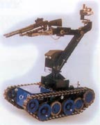 排除爆炸物機器人有輪式的及履帶式的,它們一般體積不大,轉(zhuǎn)向靈活,便于在狹窄的地方工作,操作人員可以在幾百米到幾公里以外通過無線電或光纜控制其活動。機器人車上一般裝有多臺彩色CCD攝像機用來對爆炸物進行觀察;一個多自由度機械手,用它的手爪或夾鉗可將爆炸物的引信或雷管擰下來,并把爆炸物運走;車上還裝有獵槍,利用激光指示器瞄準后,它可把爆炸物的定時裝置及引爆裝置擊毀;有的機器人還裝有高壓水槍,可以切割爆炸物。