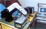 這是一個(gè)由計(jì)算機(jī)和機(jī)器人輔助設(shè)計(jì)、制作全口義齒人工牙列的應(yīng)用試驗(yàn)系統(tǒng)。該系統(tǒng)利用圖像、圖形技術(shù)來(lái)獲取生成無(wú)牙頜患者的口腔軟硬組織計(jì)算機(jī)模型,利用自行研制的非接觸式三維激光掃描測(cè)量系統(tǒng)來(lái)獲取患者無(wú)牙頜骨形態(tài)的幾何參數(shù),采用專家系統(tǒng)軟件完成全口義齒人工牙列的計(jì)算機(jī)輔助統(tǒng)計(jì)。另外,發(fā)明和制作了單顆塑料人工牙與最終要完成的人工牙列之間的過(guò)渡轉(zhuǎn)換裝置——可調(diào)節(jié)排牙器。