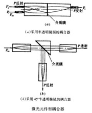 光耦合是對同一波長的光功率進(jìn)行分路或合路。通過光耦合器,我們可以將兩路光信號合成到一路上,如光耦合器示意圖(a)所示,P1和P2兩路光信號經(jīng)耦合器后變成了一路輸出P3。同時,光耦合器還可以對光進(jìn)行分路,如耦合器示意圖(b)所示,輸入的光信號Pin經(jīng)過介質(zhì)膜的反射和折射,分成了兩路信號,當(dāng)然,這兩路信號的功率比是可以調(diào)節(jié)的。