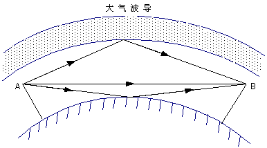 波導(dǎo)型衰落。由于氣象的影響,大氣層中會形成不均勻的結(jié)構(gòu),當(dāng)電磁波通過這些不均勻?qū)訒r將產(chǎn)生超折射現(xiàn)象,稱為大氣波導(dǎo)傳播。若微波射線通過大氣波導(dǎo),而收,發(fā)兩點在波導(dǎo)層外,如下圖所示。則接收點的電場強度除了有直線波和地面反射波以外,還有“波導(dǎo)層”以外的反射波,形成嚴(yán)重的干擾型衰落,造成通信的中斷。