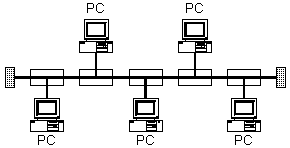 拴在一根繩上的螞蚱--總線網(wǎng)絡(luò) 總線結(jié)構(gòu)是使用同一媒體或電纜連接所有端用戶的一種方式,也就是說,連接端用戶的物理媒體由所有設(shè)備共享,如下圖所示。