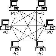 如果一個網(wǎng)絡(luò)只連接幾臺設(shè)備,最簡單的方法是將它們都直接相連在一起,這種連接稱為點對點連接。用這種方式形成的網(wǎng)絡(luò)稱為全互連網(wǎng)絡(luò),也就是網(wǎng)狀網(wǎng)絡(luò),如上圖所示。圖中有6個設(shè)備,在全互連情況下,需要15條傳輸線路。如果要連的設(shè)備有n個,所需線路將達(dá)到n(n-1)/2個!顯而易見,這種方式只有在涉及地理范圍不大,設(shè)備數(shù)很少的條件下才有使用的可能。即使屬于這種環(huán)境,在LAN技術(shù)中也不常使用。這里所以給出這種拓?fù)浣Y(jié)構(gòu),是因為當(dāng)需要通過互連設(shè)備(如路由器)互連多個LAN時,將有可能遇到這種廣域網(wǎng)(WAN)的互連技術(shù)。