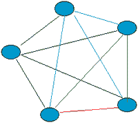 如果有多個用戶時,為保證任意兩個用戶間都能通話,很自然我們會想到每兩個用戶用一對線路連起來。